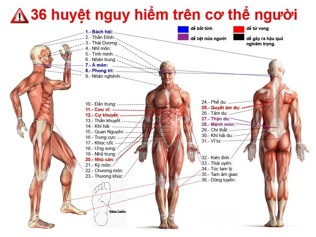36 vị trí huyệt đạo nguy hiểm trên cơ thể con người
