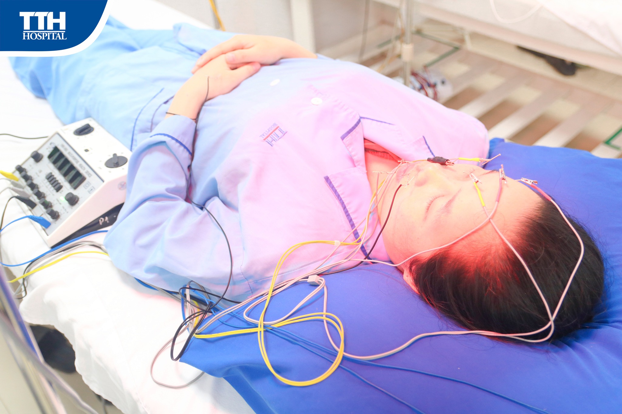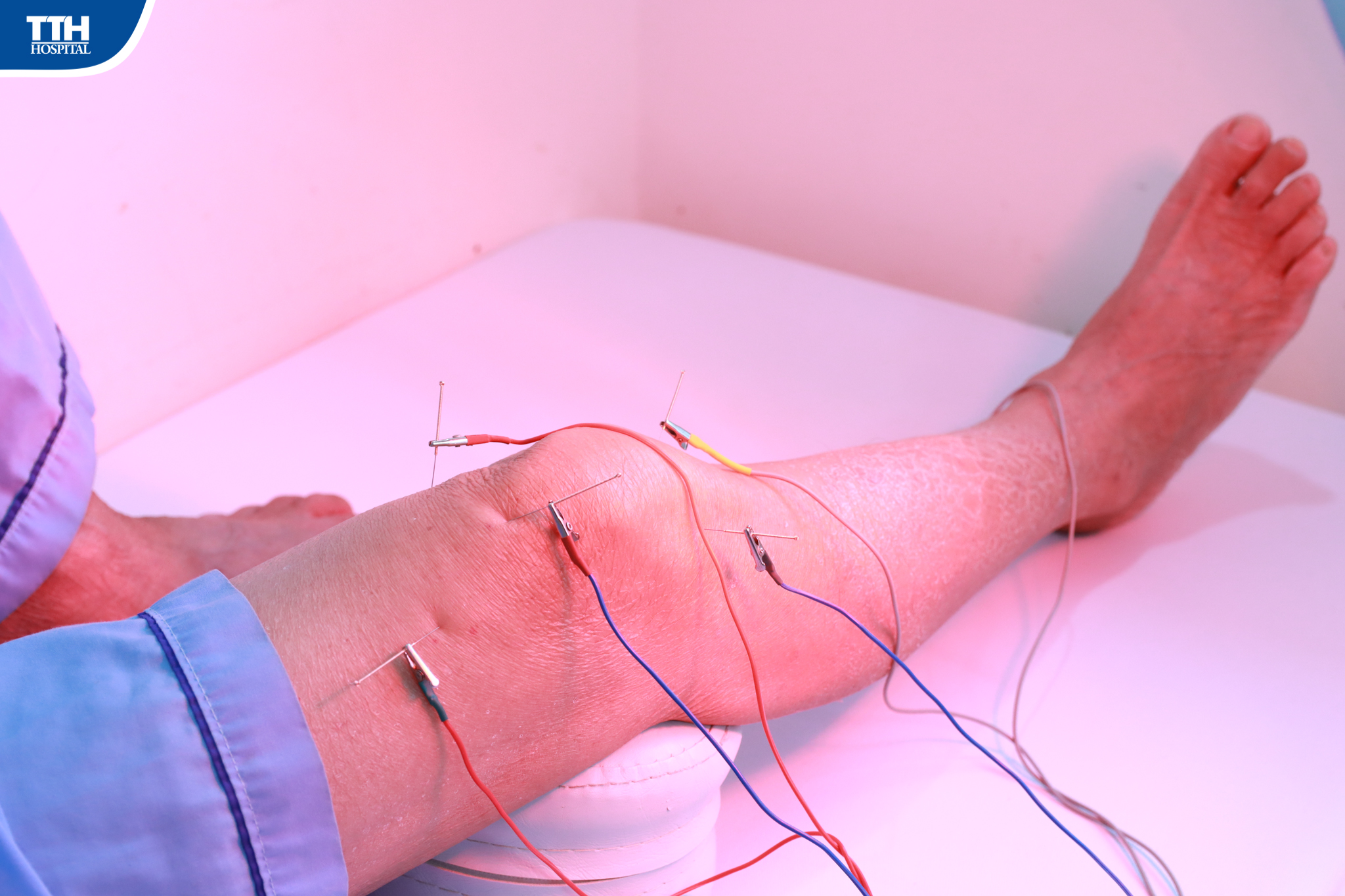 Bệnh nhân đang thực hiện phương pháp điện châm tại hệ thống bệnh viện TTH Group.