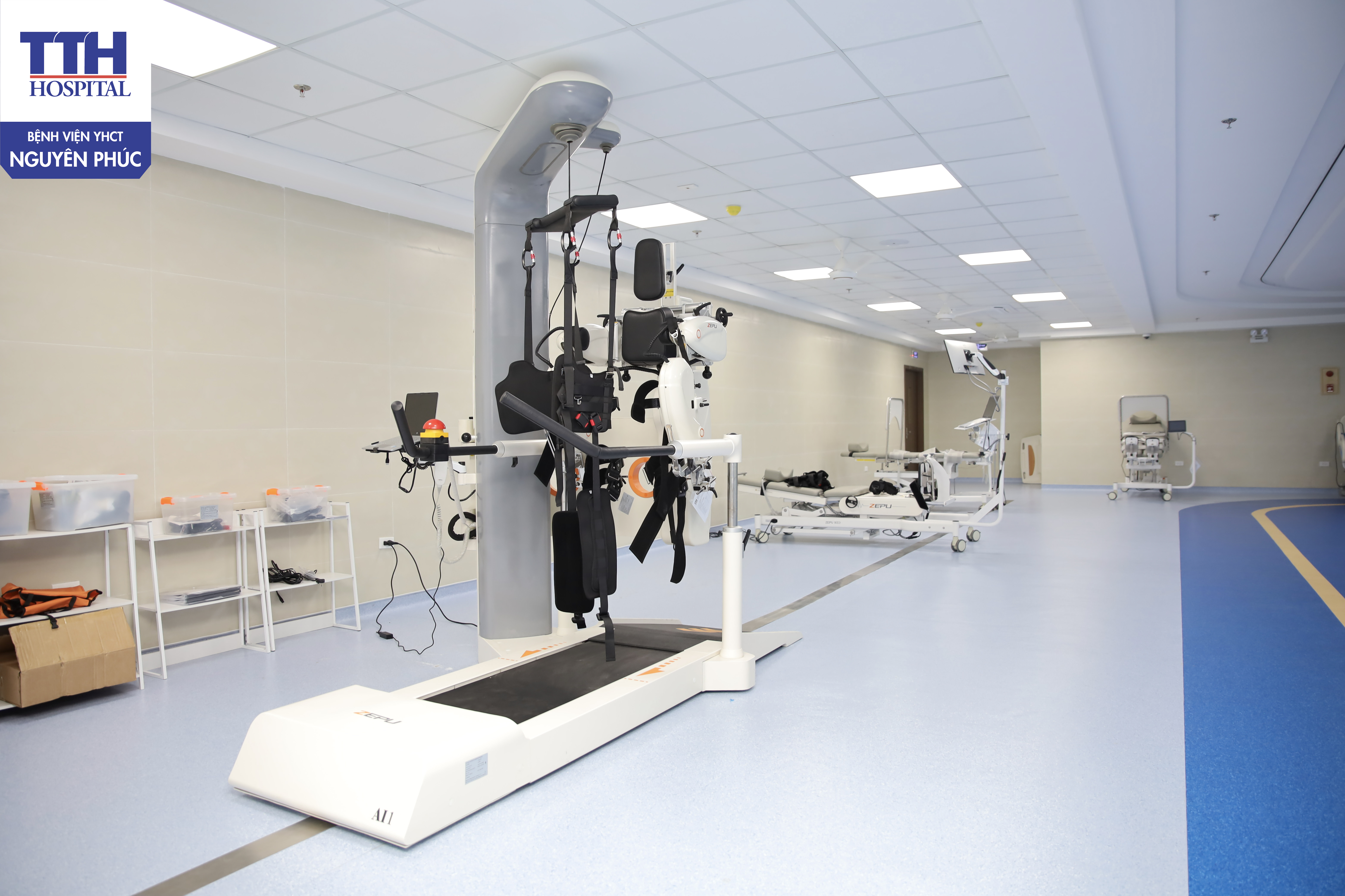 Bệnh viện YHCT trang bị hệ thống robot tập vật lý trị liệu tại Nghệ An. Trong ảnh là Robot phục hồi chức năng ZEPU – AI1 tích hợp trí tuệ nhân tạo AI